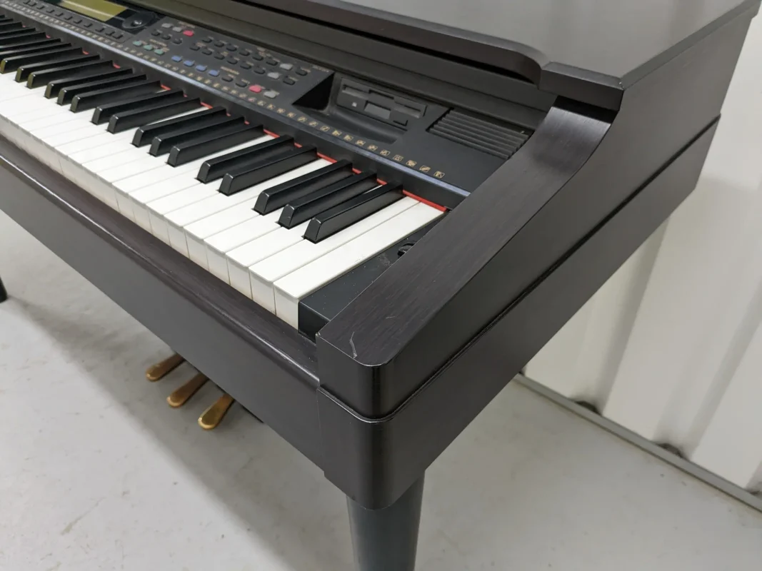 The Clavinova CVP-96 is a rare and well-maintained digital piano with only minor cosmetic scratches. It delivers exceptional sound quality and perfectly functioning electronics. Features include a large, user-friendly LCD for easy control, 224 realistic voices (including piano, strings, brass, and expressive "sweet" wind voices), and support for song disk playback with lyrics display. Learning is made simple with guide functions and a three-step system. Enjoy dynamic auto accompaniment with 170 styles, a music database with over 400 presets, and custom settings via the registration function. Additional features include versatile recording options, automatic vocal harmony, and convenient computer connectivity through TO HOST terminals.