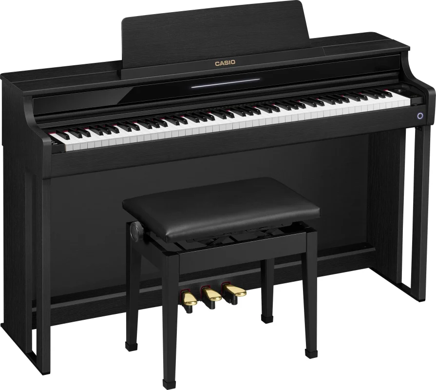 - 88-Key GH Keyboard: Weighted keys replicate the feel of a traditional piano.