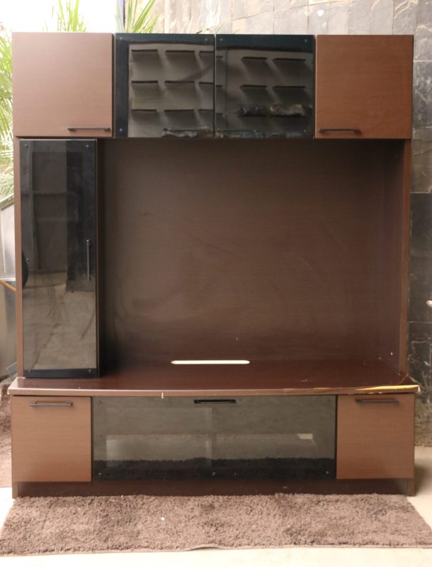 Modern Japanese TV Wall Unit with Glass Accents